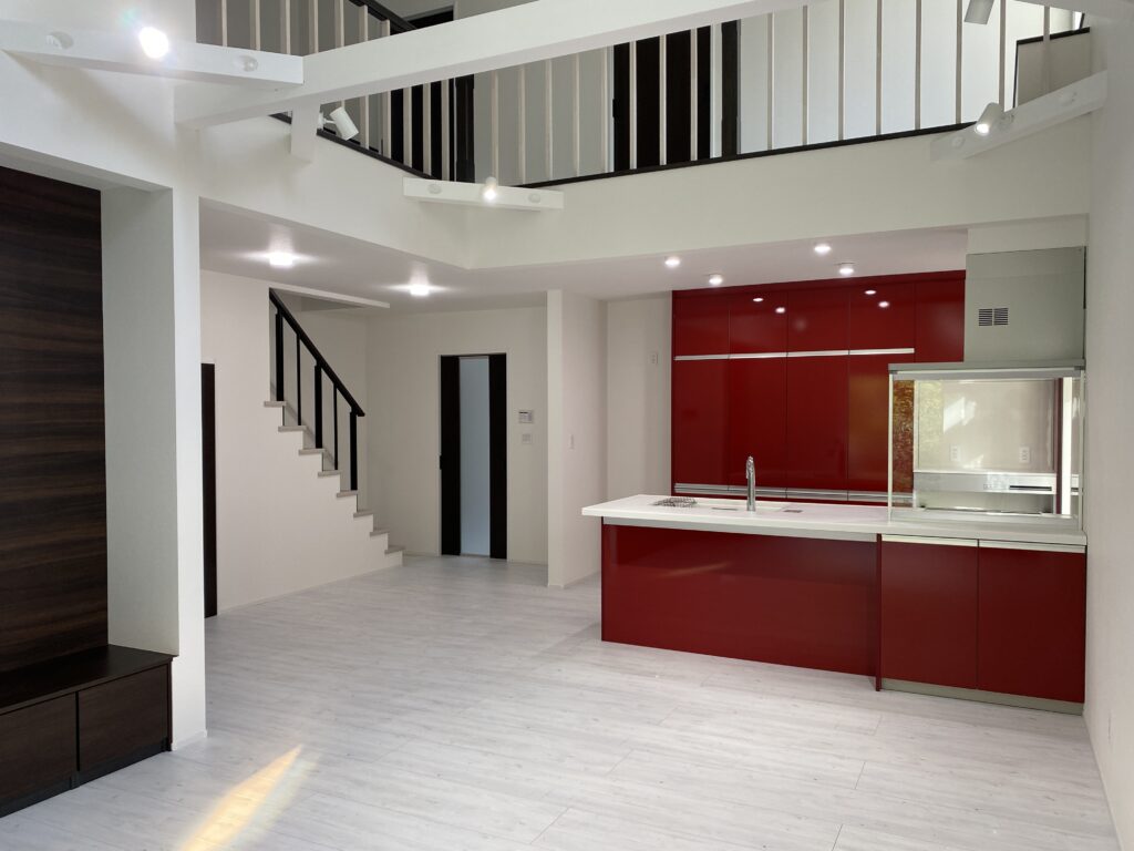 吹き抜けが開放的な室内